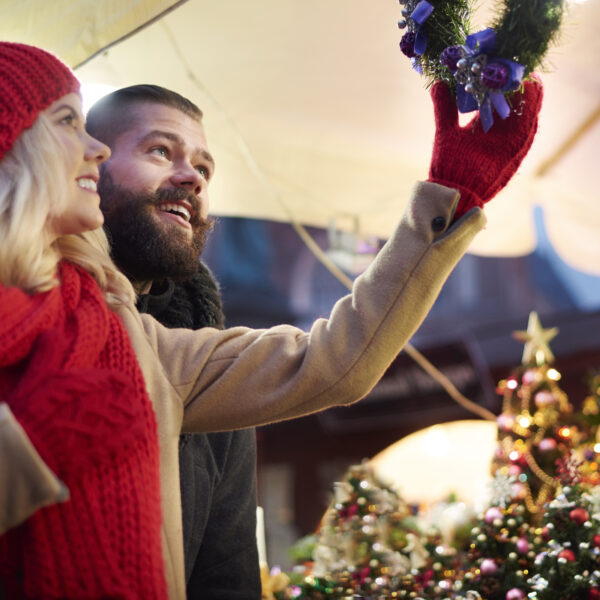 Ein echtes Highlight ist das Winterwäldchen am Kornmarkt, das mit über 100 geschmückten Tannenbäumen und weißen Zelten eine märchenhafte Stimmung schafft.